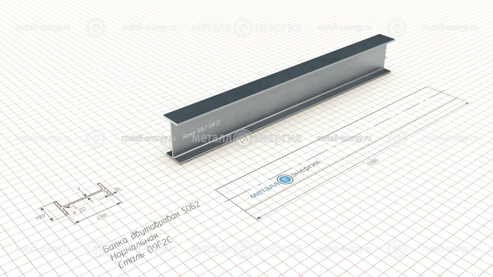 Горячекатаный двутавр 50Б2 из низколегированной стали 09Г2С относится к балкам нормального типа с параллельными гранями полок. Эти стальные балки производятся в соответствие с ГОСТ 26020-83 либо СТО АСЧМ 20-93 на сталепрокатном стане методом горячей прокатки.