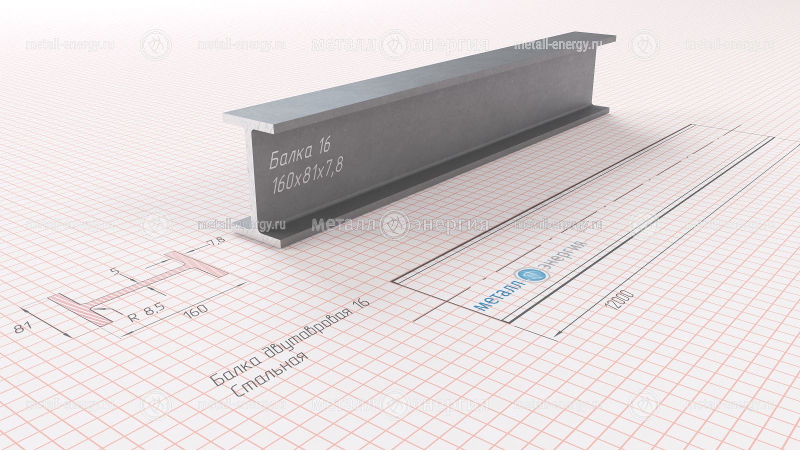 Двутавр стальной горячекатаный 16 – с уклоном внутренних граней полок произведен в соответствие с ГОСТ 8239-89 методом горячей прокатки на сталепрокатном стане. В наличии на складе представлены балки, изготовленные из рядовой стали 3.