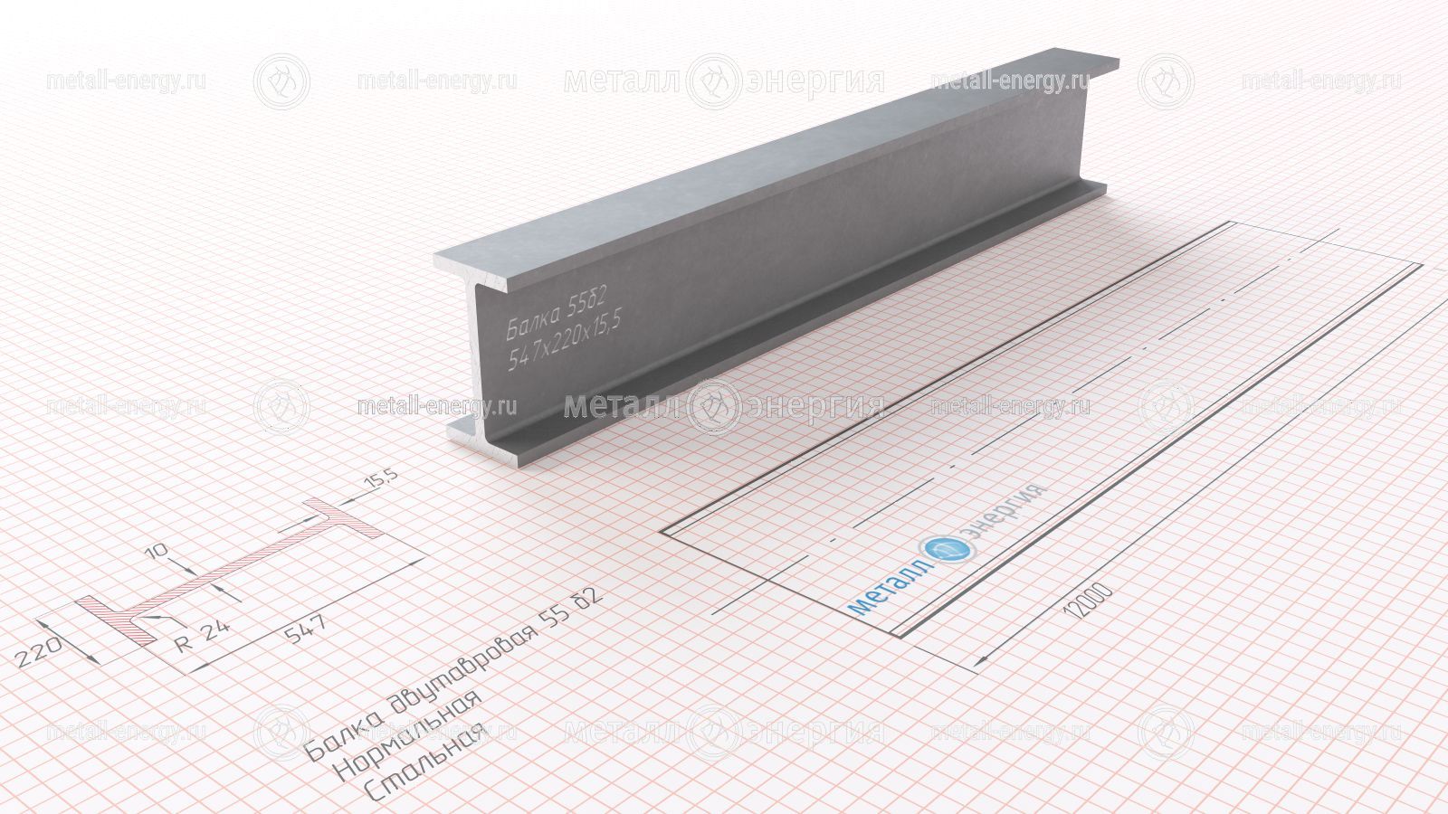 Двутавр горячекатаный 55Б2 – нормальный с параллельными гранями полок произведен в соответствие с ГОСТ 26020-83 или СТО АСЧМ 20-93 методом горячей прокатки на сталепрокатном стане. В наличии на складе представлены балки, изготовленные из рядовой стали 3.