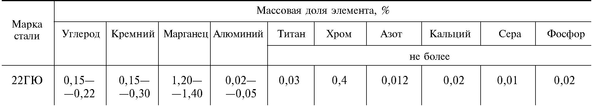 В — с нормированием механических свойств и химического состава из спокойной, полуспокойной и кипящей стали марок Ст1, Ст2, Ст3, Ст4 по ГОСТ 380 (категории 4 по ГОСТ 16523 и категорий 2—5 по ГОСТ 14637), из спокойной, полуспокойной и кипящей стали марок 08, 10, 15,20 по ГОСТ 1050, из стали марки 08Ю по ГОСТ 9045, из низколегированной стали марки 22ГЮ схимическим составом, приведенным в табл. 1а (трубы диаметром от 140 до 426 мм);