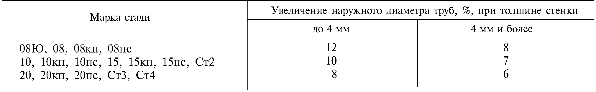 Увеличение наружного диаметра термически обработанных труб при раздаче должно соответствовать нормам, указанным в табл. 5.