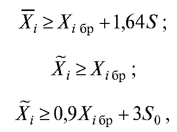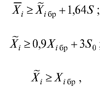 X i бр — браковочное значение проверяемого параметра, установленное таблицей 4.