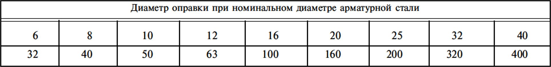 Диаметр оправки для арматурной стали диаметрами 14, 18 и 28 мм, а также для арматурной стали классов прочности Ат600, Ат800, Ат1000 и Ат 1200 должен быть согласован изготовителем с потребителем.