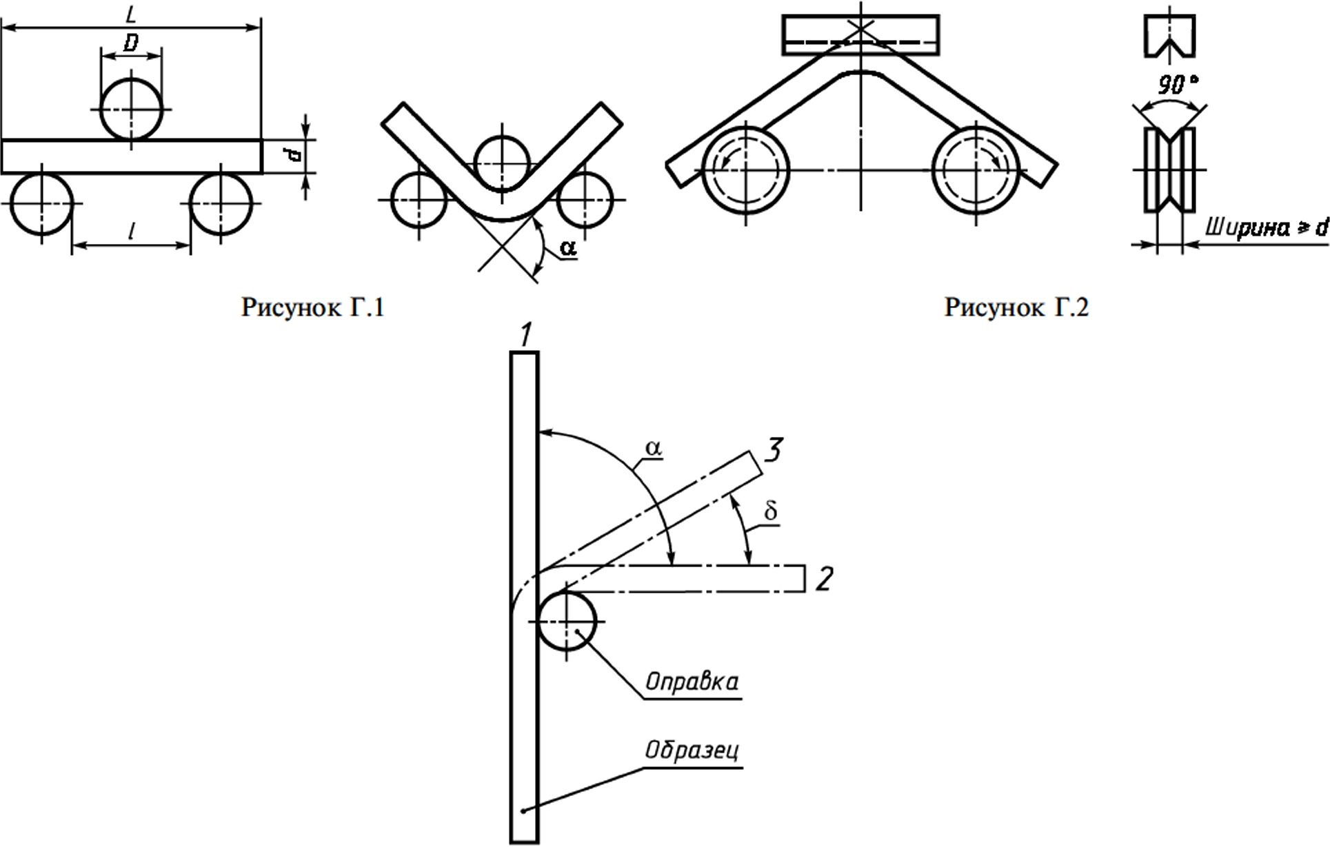 Испытание должно проводиться на универсальных испытательных машинах или прессах, оборудованных устройствами для изгиба и разгиба. Схемы устройств приведены на рисунках Г.1 и Г.2.
