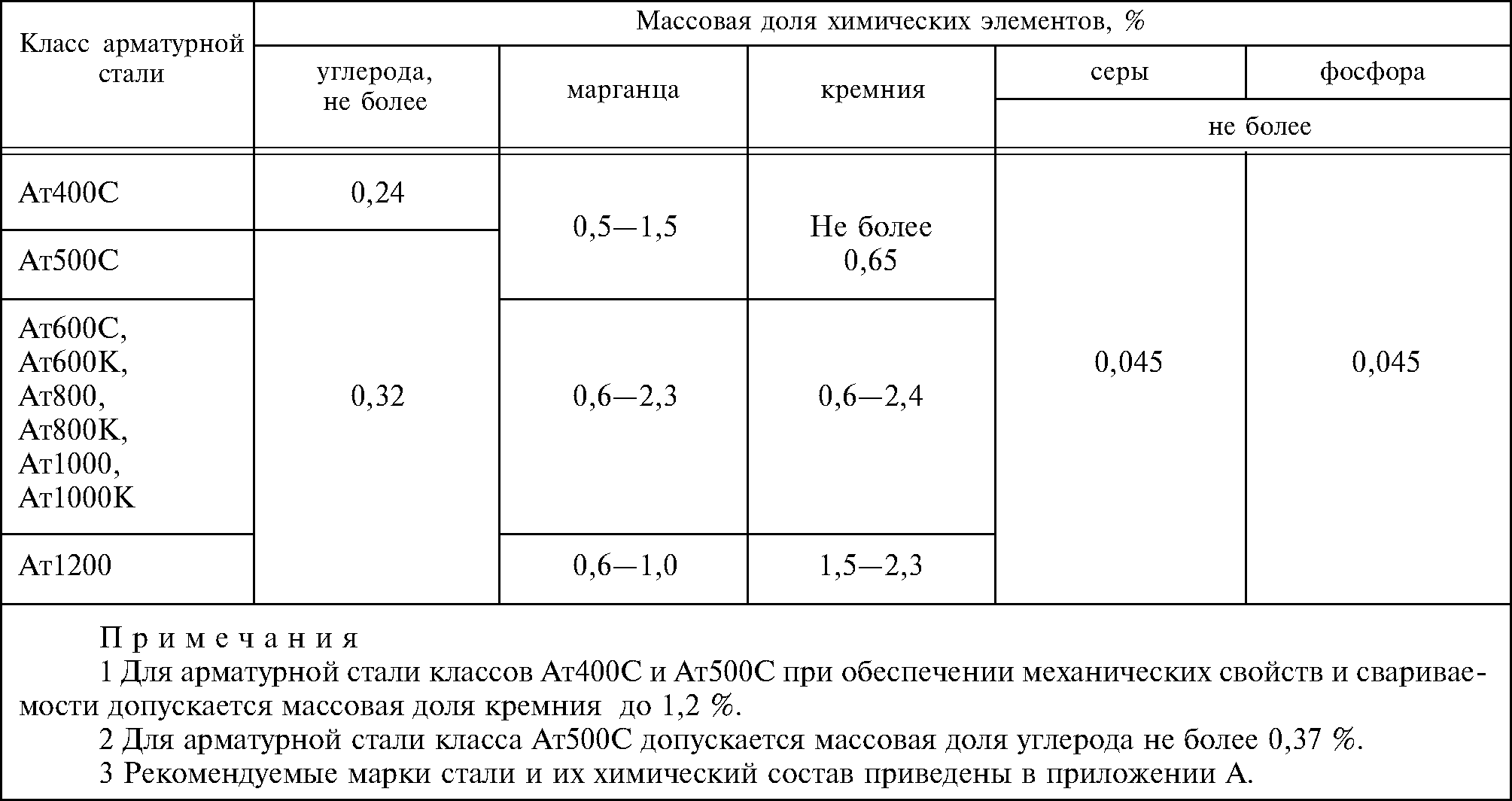 - Для стали, из которой изготовляют арматурную сталь классов Ат600, Ат600С, Ат600К, Ат800 и Ат800К, допускается увеличение массовой доли серы и фосфора до 0,045 % каждого.