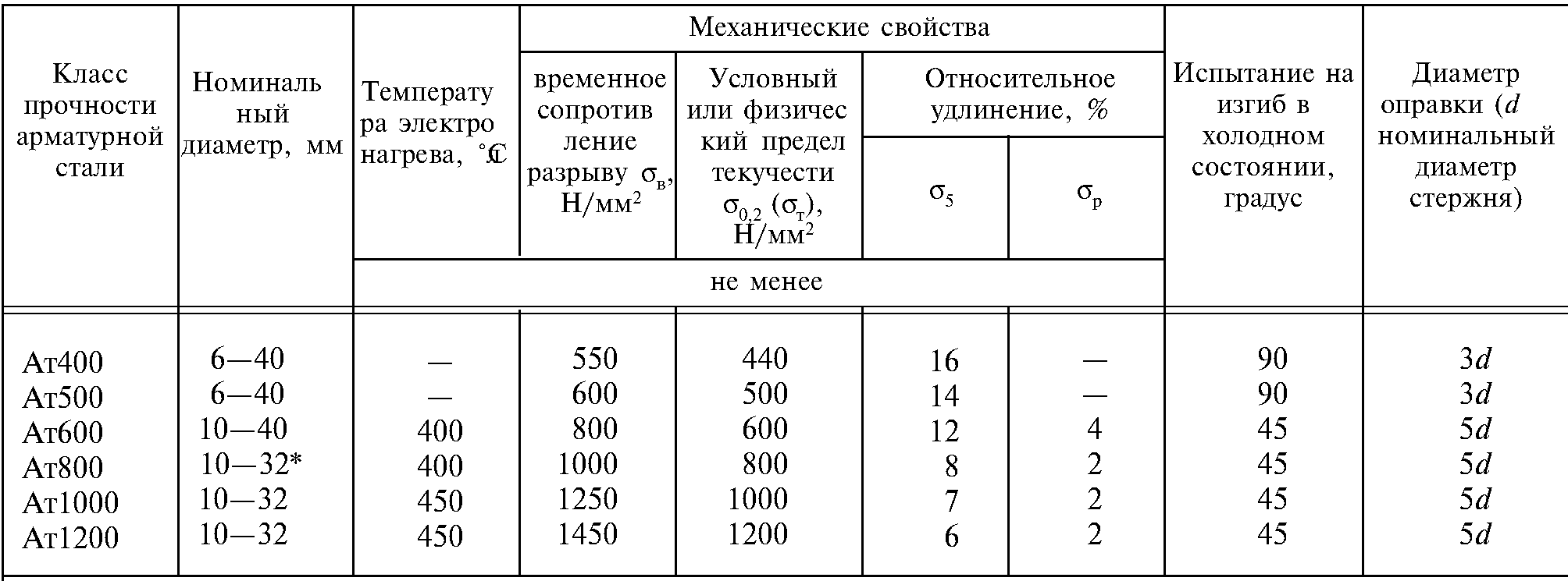 5.6 Механические свойства арматурной стали до и после электронагрева, а также результатыиспытаний ее на изгиб должны соответствовать требованиям, установленным таблицей 4.