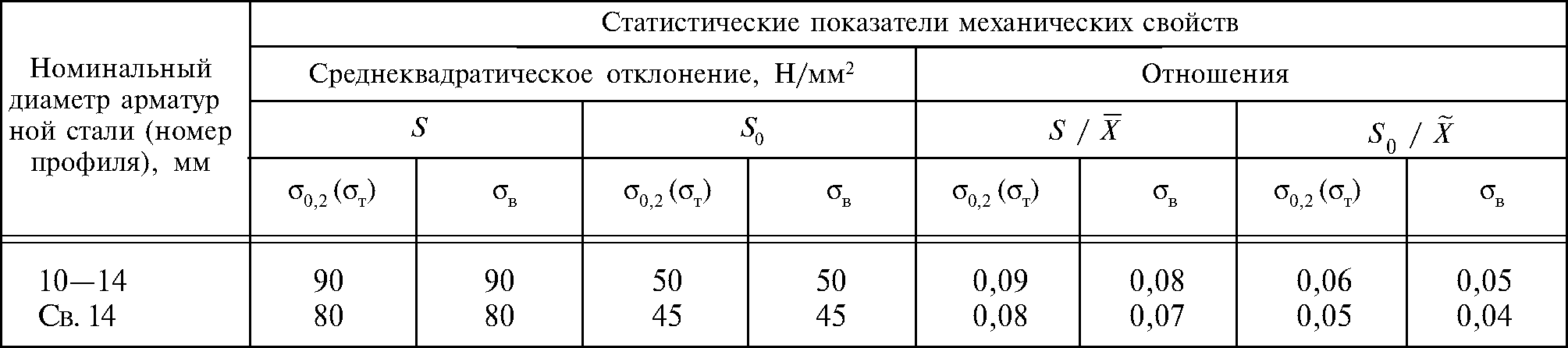 Значение S0 определяют экспериментальным методом не менее чем по двум плавкам для каждой марки стали, одного класса и диаметра арматурной стали путем случайного отбора не менее 100 проб от каждойплавки.