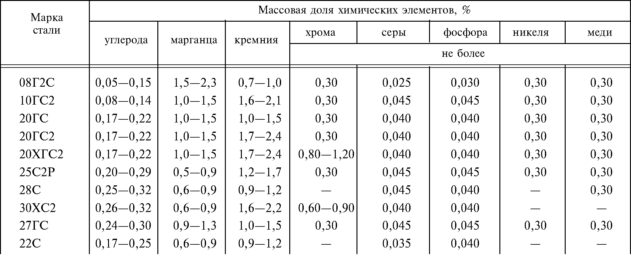 2 Химический состав углеродистой стали — по РОСТ 380, низколегированной — по нормам, приведенным в таблице А.2, марок 35РС и 25Р2С — по РОСТ 5781 с дополнительными требованиями по пункту 3настоящего приложения.