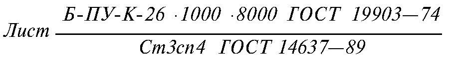Лист нормальной точности (Б), улучшенной плоскостности (ПУ), с обжатой кромкой (К), размерами 26 1000-8000 мм по ГОСТ 19903—74, из стали марки СтЗсп, категории 4 по ГОСТ 14637—89: