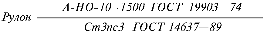Рулон повышенной точности (А), с необрезанной кромкой (НО), размерами 10-1500 мм по ГОСТ 19903—74, из стали марки Ст3пс, категории 3 по ГОСТ 14637—89: