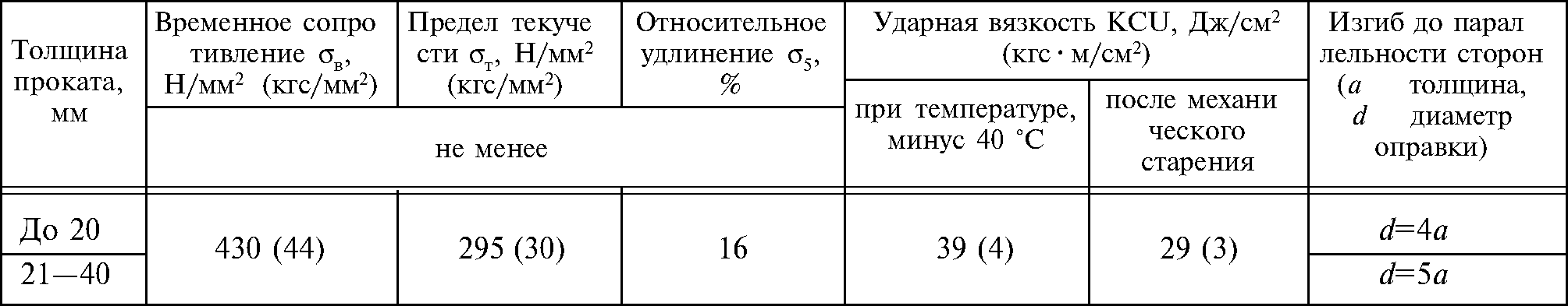 2.1.7.2. По согласованию изготовителя с потребителем значение предела текучести прокататолщиной более 20 мм допускается на 10 Н/мм2 (1 кгс/мм2) ниже по сравнению с приведенными втабл. 2.