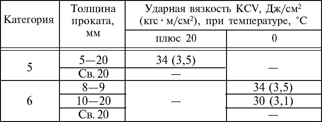 2.1.10. Нормы ударной вязкости KCV проката категорий 5 и 6 должны соответствовать приведенным в табл. 5.