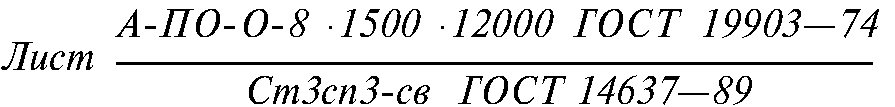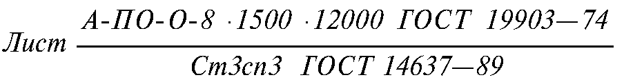 Лист повышенной точности (А), особо высокой плоскостности (ПО), с обрезанной кромкой (О), размерами 8 1500 12000 мм по ГОСТ 19903—74, из стали марки СтЗсп, категории 3 по ГОСТ 14637—89: