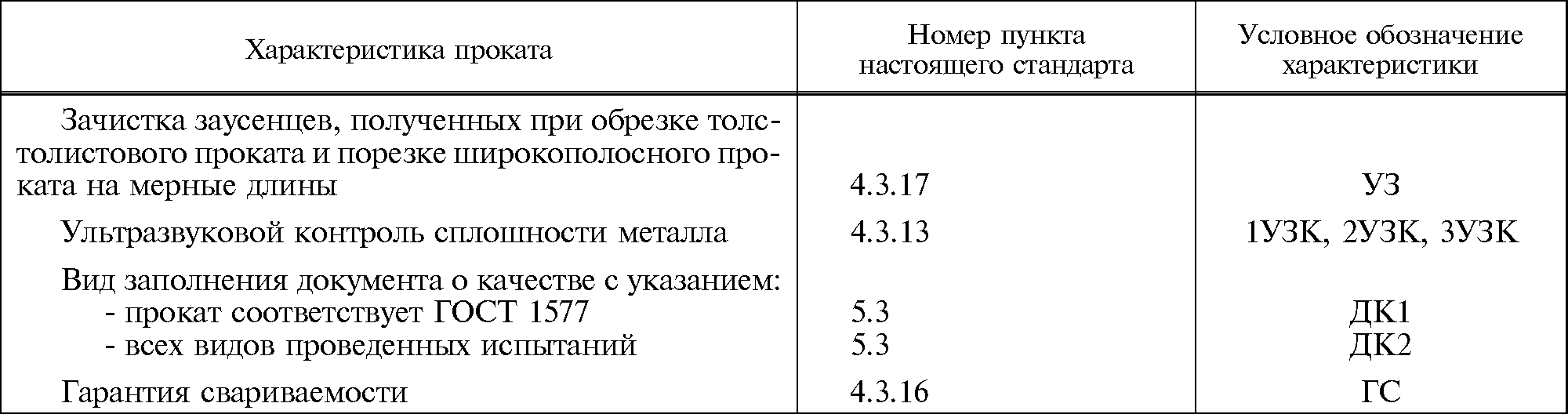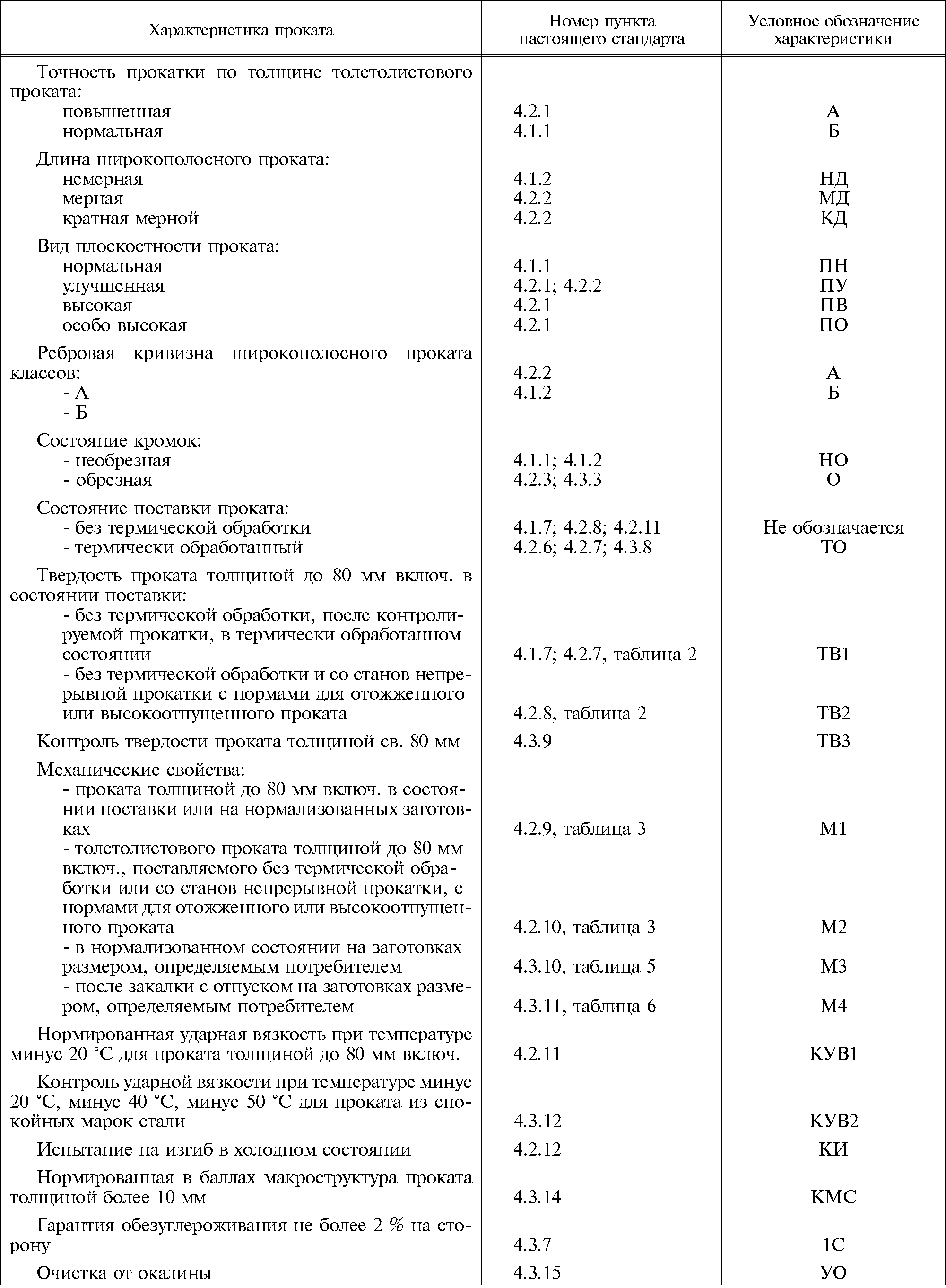 3.4 Условные обозначения характеристик проката при оформлении заказа приведены втаблице 1.