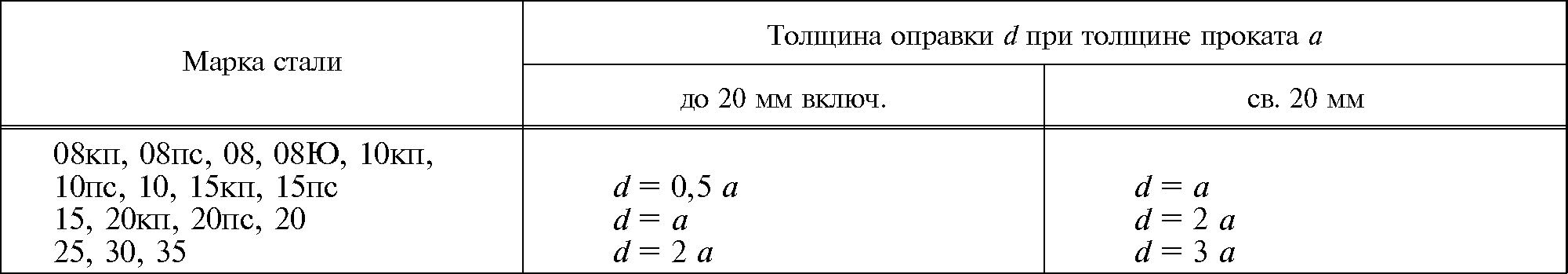 4.2.12 Прокат толщиной до 60 мм включительно с испытанием на изгиб в холодном состояниина 180° при толщине оправки, указанной в таблице 4. В месте изгиба не должно быть излома,расслоений и трещин, видимых невооруженным глазом.
