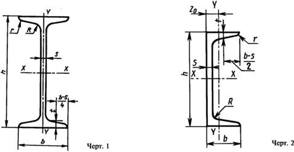 2. Форма, размеры балок и швеллеров, площадь поперечного сечения, масса 1 м и справочныевеличины должны соответствовать указанным на черт. 1 и 2 и табл. 1.