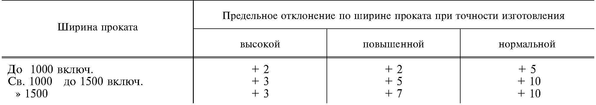 7.1. По требованию потребителя предельные отклонения по ширине проката с обрезнойкромкой повышенной и нормальной точности шириной свыше 1000 мм не должны превышатьзначений, приведенных в табл. 5.