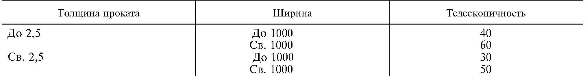 По требованию потребителя для проката толщиной до 2,5 мм телескопичность не должна превышать 30 мм для рулонов шириной до 1000 мм и 50 мм — шириной свыше 1000 мм.