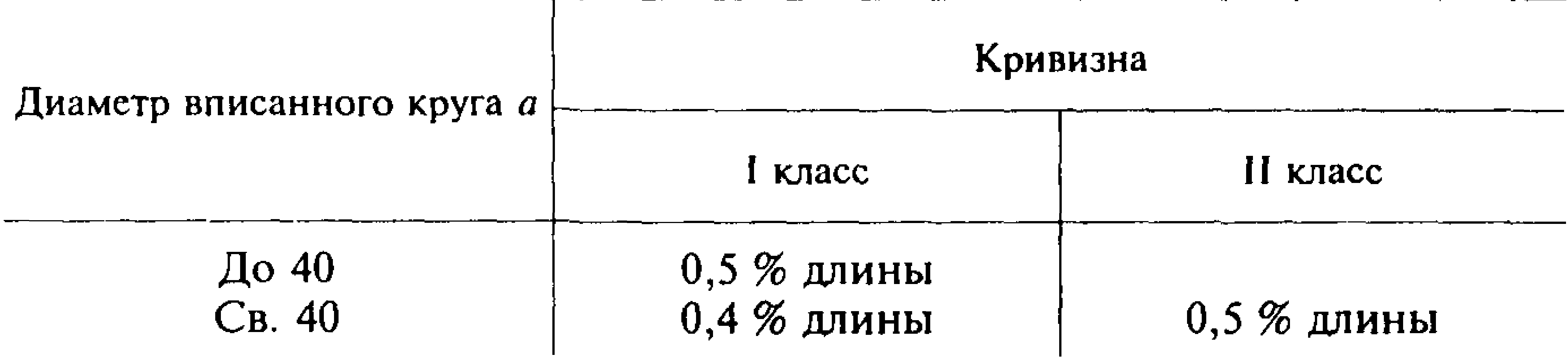 град при диаметре вписанного круга до 14 мм и свыше 14 мм до 50 мм включительно — 3 град/м на длину профиля в метрах, но не более18 град, свыше 50 мм — 3 град/м на длину профиля в метрах, но неболее 15 град.
