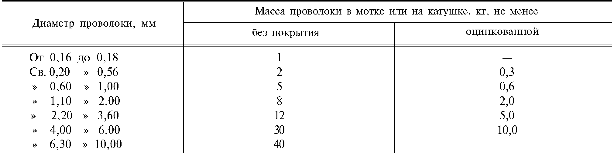 Примечание. Допускаются мотки проволоки без покрытия массой на 50 % меньше указанной в табл. 4 в количестве не более 10 % массы мотков проволоки в партии.