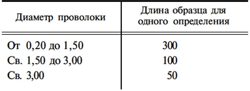 - отбирают образцы проволоки и измеряют установленную для испытания длину. Отбор образцов производят не менее чем через 0,5 м один от другого;