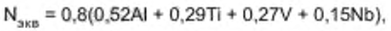 3.15 азотный эквивалент Nэкв, %: Показатель, характеризующий максимальную массовую долю азота в зависимости от суммарной массовой доли нитридообразующих элементов: алюминия, титана, ниобия и ванадия.