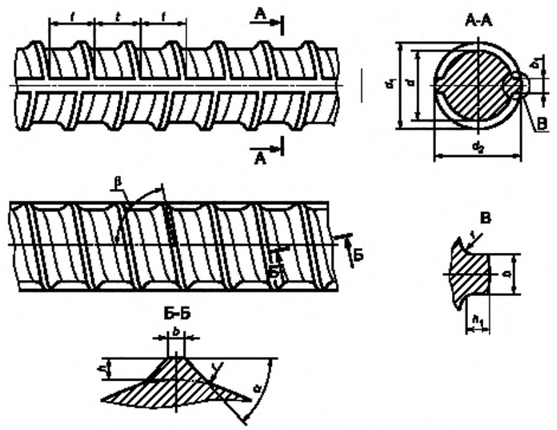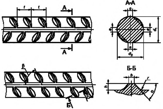 3.6 параметры периодического профиля арматурного проката: (см. рисунки 1 - 4):