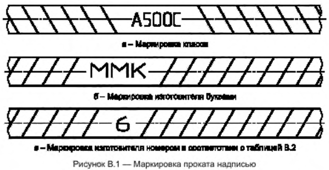 В. 1.3 Маркировку класса проката наносят на одной стороне (в одном раду) поперечных ребер. Маркировку изготовителя наносят на стороне, свободной от маркировки класса проката.