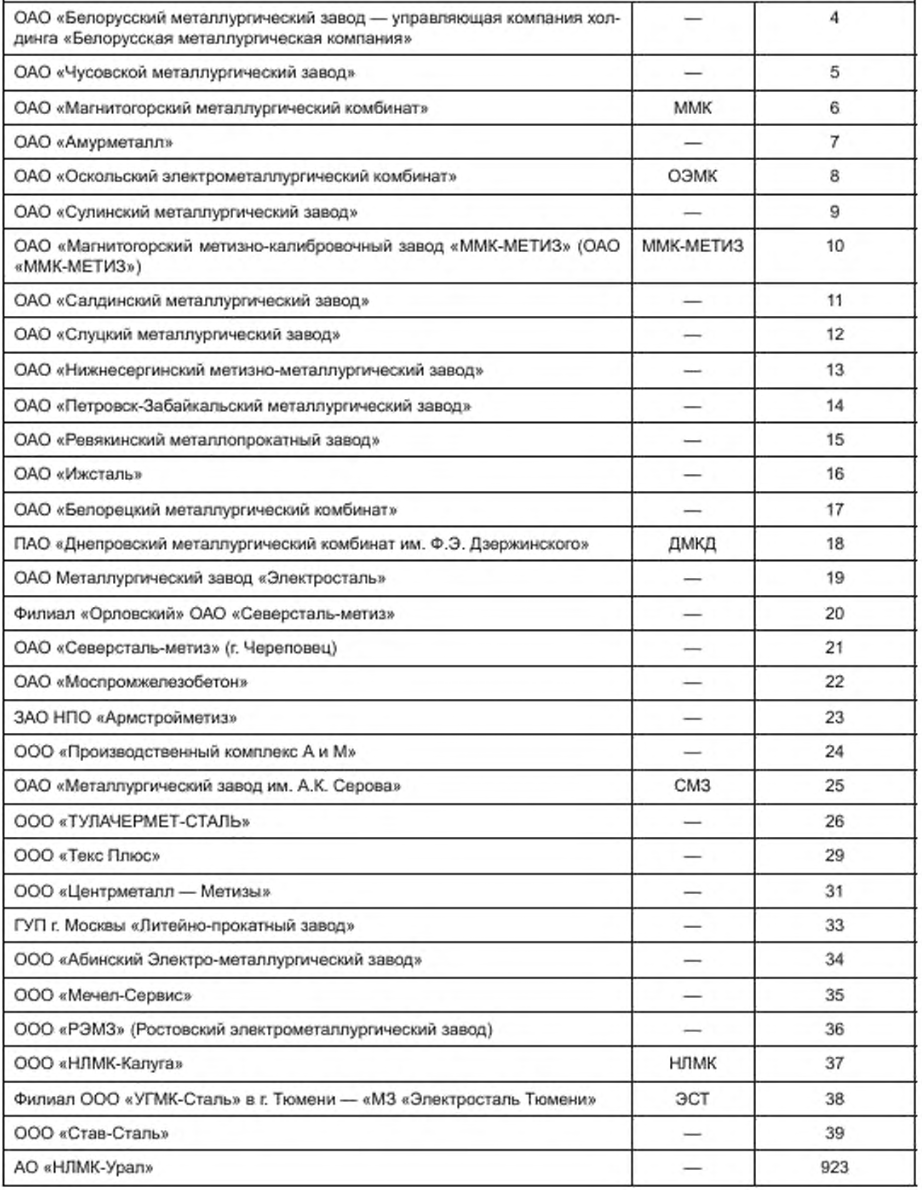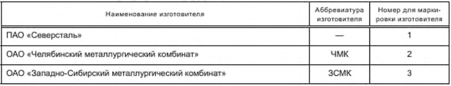 Таблица В.2 — Номера для маркировки изготовителей проката