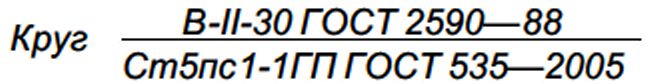 Прокат горячекатаный круглый обычной точности прокатки (В), II класса кривизны, диаметром 30 мм по ГОСТ 2590—88, из стали марки Ст5пс, категории 1, группы 1ГП:
