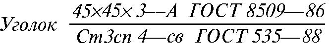 Прокат горячекатаный угловой равнополочный размером 45x45x3 мм, высокой точности прокатки (А) по ГОСТ 8509, марки Ст3сп, категории 4 с гарантией свариваемости (св):