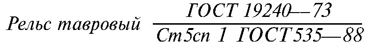 Рельс тавровый по ГОСТ 19240 стали марки Ст5сп, категории 1: