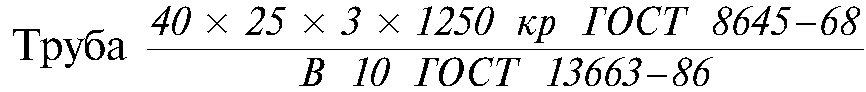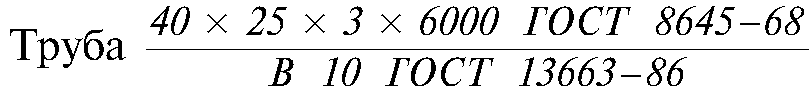 Трубы наружными размерами А = 40 мм, В = 25 мм, толщиной стенки 3 мм, длиной, кратной