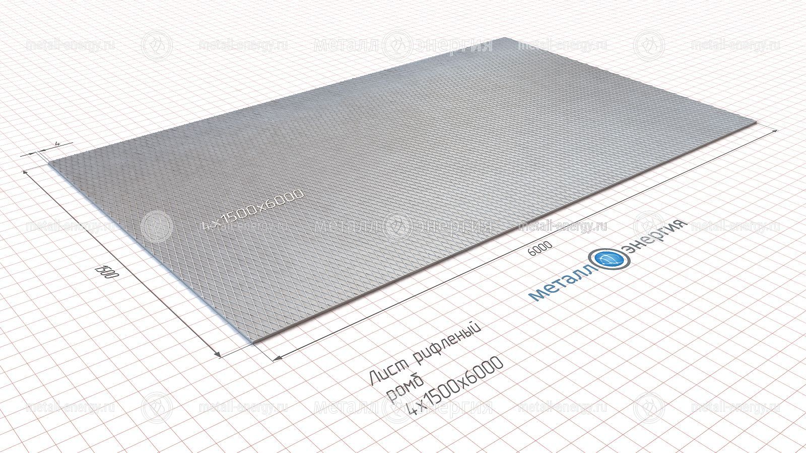 Рифленый лист 4х1500х6000 с чечевичным рифлением – прокат листовой произведен в соответствие с ГОСТ 8568-77 «Листы стальные с ромбическим и чечевичным рифлением»