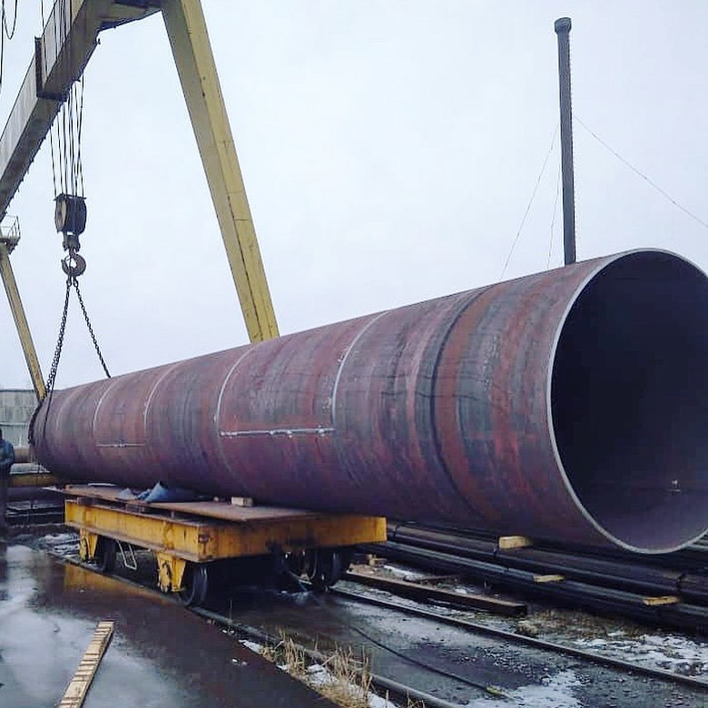 Отгружена очередная труба большого диаметра. Диаметр трубы 1620 мм., толщина стенки 20 мм., длина 10 метров. Вес изделия 9,5 тонн.Это уже восьмая труба из партии ТБД, выполненных по размерам заказчика. Изделие будет использована в строительстве коммуникационного коллектора. Труба произведена путем вальцевания стальных листов шириной 2000 мм., длиной 6000 мм. Продольный стык краев полученной обечайки сваривается. После 5 обечаек соединеняются между собой поперечными сварными швами.