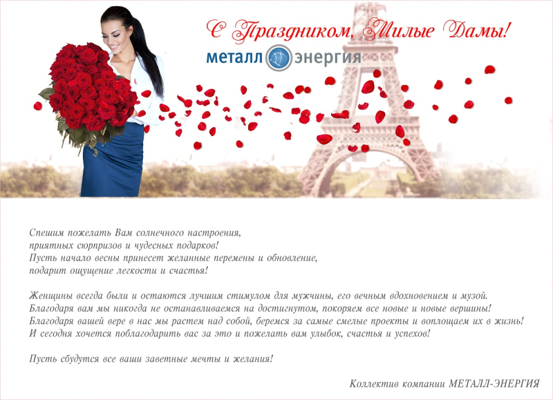 Компания «Металл-Энергия» поздравляет Вас с 8 Марта!