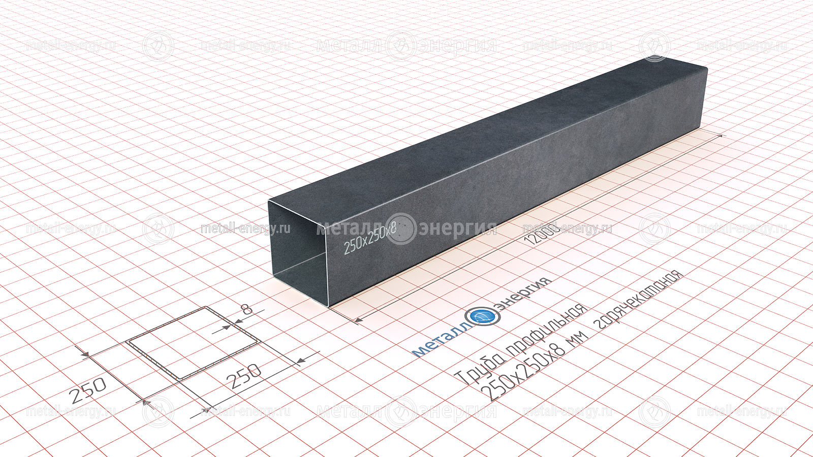 Профильная труба 250x250x10 - производится соответствие, с ГОСТ 8639-82, 30245-03 из рядовой стали 3сп/пс5. Купить квадратную трубу 250x250x10 вы можете оптом и в розницу. Минимальный объем отгрузки - от одной трубы.