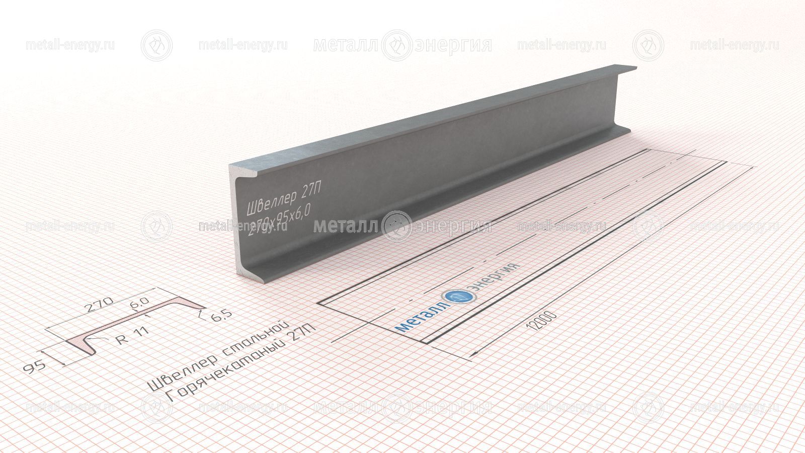 Стальной горячекатаный швеллер 27У - произведен в соответствие с ГОСТ 8240-97 (методом горячей прокатки) из рядовой углеродистой стали 3. Продукция упакована в пачки весом от 3 до 7 тонн. Швеллер 27У из низколегированной стали 09Г2С и других сталей поставляется под заказ.