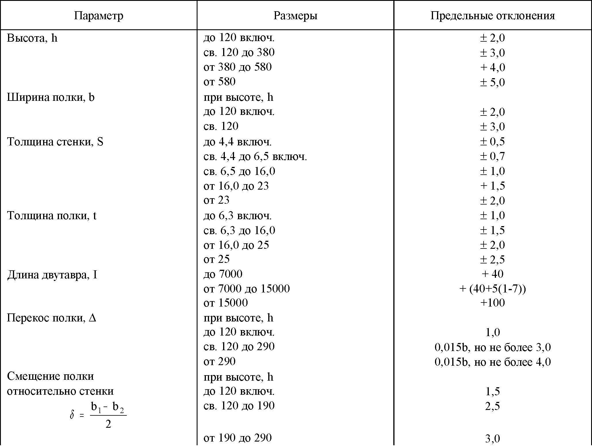 3.4 Предельные отклонения по размерам и форме поперечного сечения двутавров (черт. 1 и 2) должны соответствовать приведенным в таблице 2.