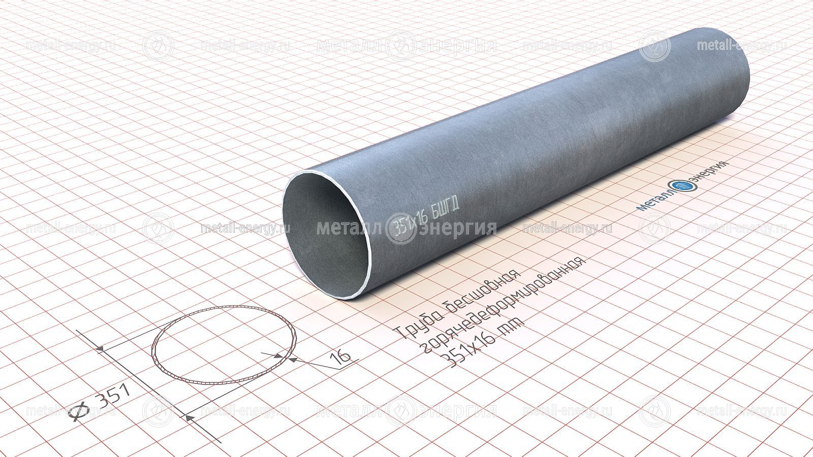 Стальная горячедеформированная труба 351x16 - произведена в соответствии с ГОСТ 8731-74 и ГОСТ 8732-78. Купить трубу 351x16 бшгд вы можете оптом и в розницу. Минимальный объем отгрузки - от одной трубы.