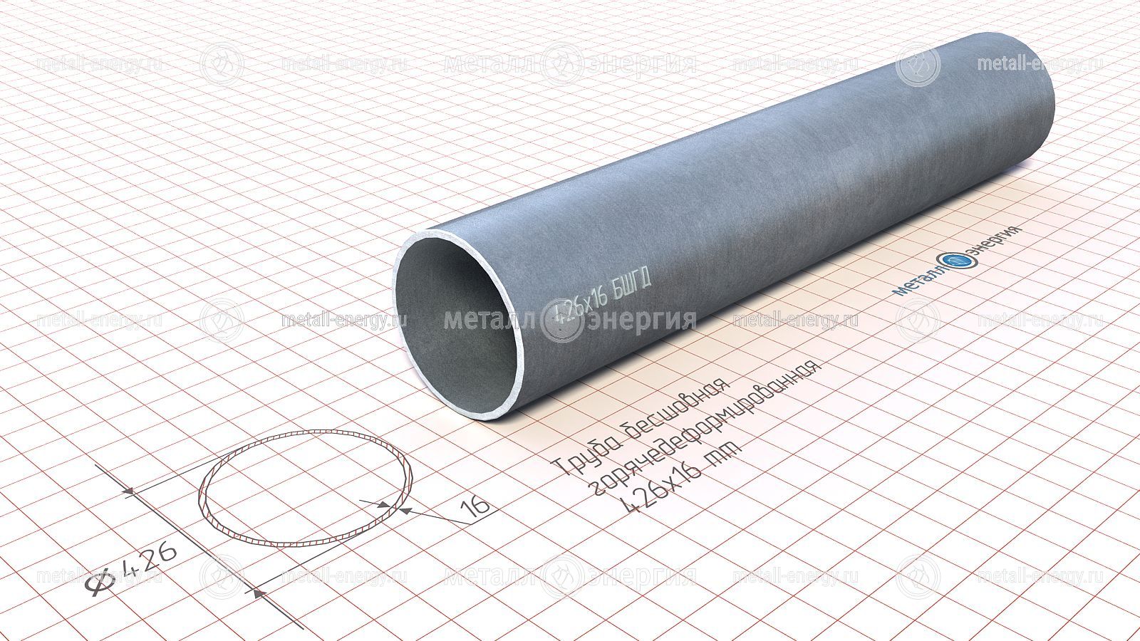 Стальная горячедеформированная труба 426x16 - произведена в соответствии с ГОСТ 8731-74 и ГОСТ 8732-78. Купить трубу 426x16 бшгд вы можете оптом и в розницу. Минимальный объем отгрузки - от одной трубы.