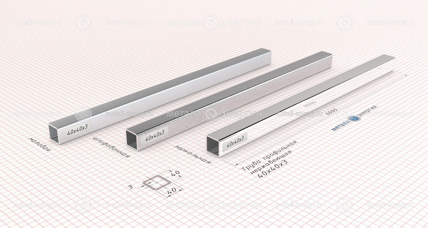 Купить нержавеющую профильную трубу 40х40х3 вы можете любыми партиями: оптом и в розницу. Минимальный объем отгрузки трубы из нержавеющей стали 08х18н10 AISI 304 - одна труба. На складе всегда в наличии труба с матовой, шлифованной и полированной поверхностью.