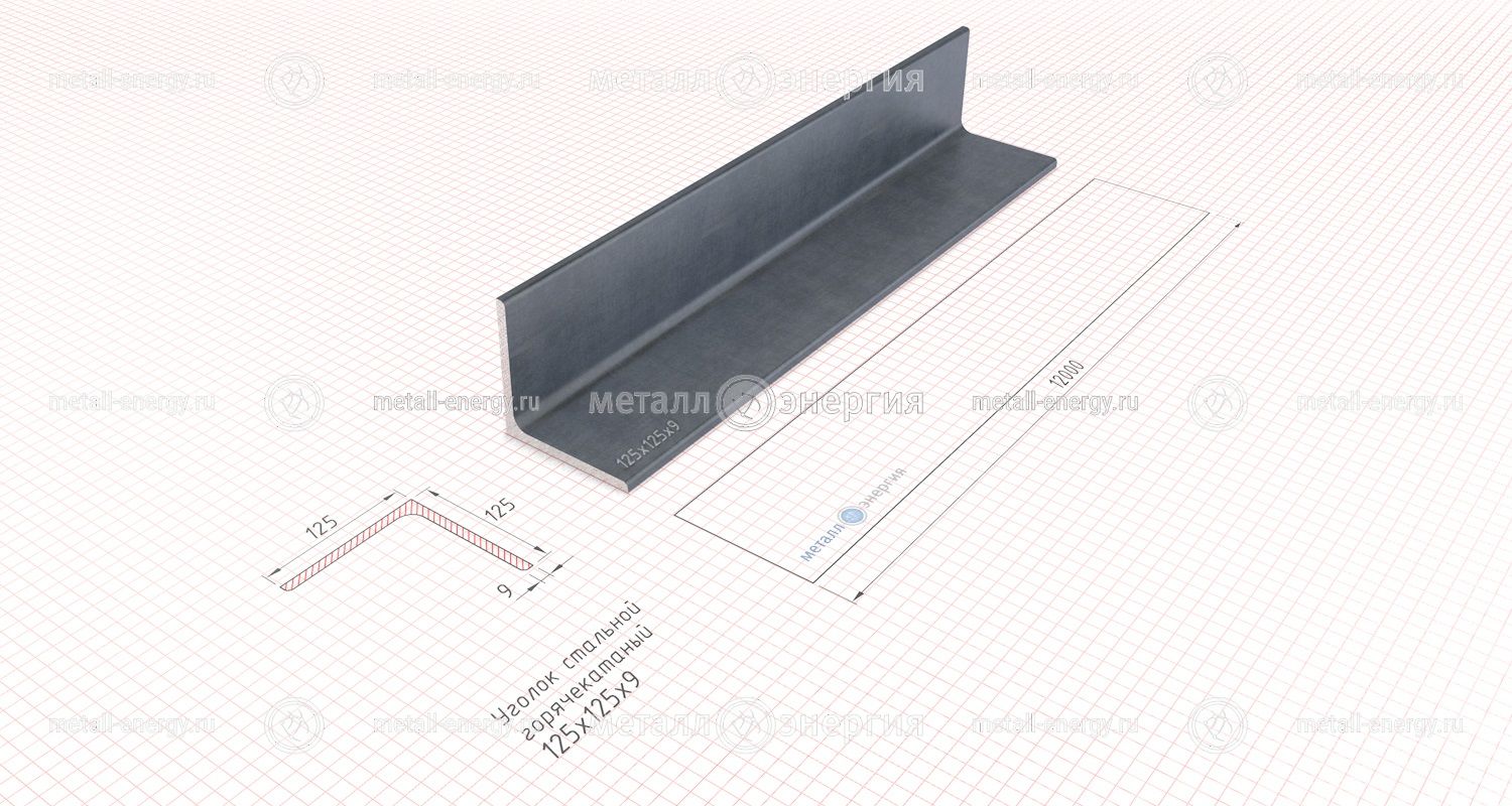 Уголок стальной горячекатаный равнополочный 125х125х9 - произведен в соответствие с ГОСТ 8509-93 (методом горячей прокатки) из рядовой углеродистой стали 3. Продукция упакована в пачки весом от 3 до 7 тонн.